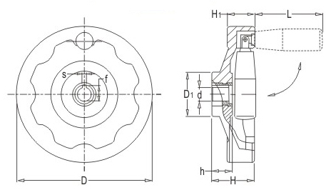 JS.101001 內(nèi)波紋手輪 顏色:亮光黑 材質(zhì):酚醛樹脂(膠木) 用途:適用于各類機械裝備的操作調(diào)節(jié) 特性:光澤感強,外形美觀,手柄可折疊。耐高溫、溶劑、機油及其他化學(xué)試劑。鋼制鐵芯表面處理防銹能力強。標(biāo)準化使用,安裝簡便