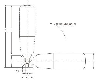 JS.103005 可折手柄 顏色:亮光黑 材質(zhì):酚醛樹(shù)脂(膠木)或增強(qiáng)尼龍 用途:適用于各類(lèi)機(jī)械上緊固位置的靈活調(diào)節(jié) 特性:手柄拉出后可90度折疊,提高設(shè)備在運(yùn)行中的安全性