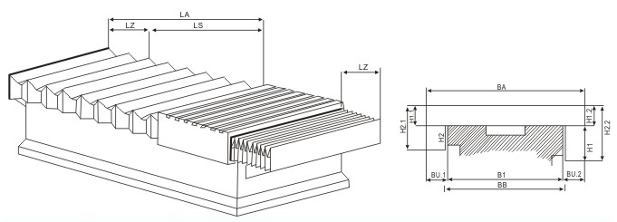 標(biāo)準(zhǔn)護(hù)罩使用在機床高立柱和大型機床長導(dǎo)軌上,結(jié)構(gòu)合理,行走均勻,堅固耐用。