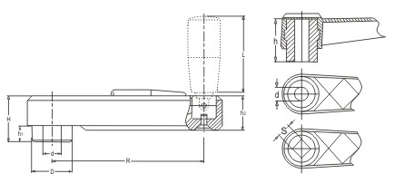 JS.103015 內(nèi)藏?fù)u手柄 顏色:黑色 材質(zhì):增強(qiáng)尼龍 用途:適用于各類機(jī)械設(shè)備的調(diào)節(jié) 特性:啞光飾面、手柄可折疊、外形美觀、機(jī)械強(qiáng)度高、標(biāo)準(zhǔn)化使用、安裝簡便