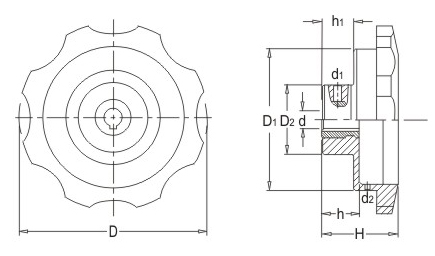 JS.105007 波紋表盤手輪 顏色:黑色 材質:酚醛樹脂(膠木)、鋁合金 用途:適用于木工、食品、包裝、印刷等機械的精密指示或讀數(shù)調節(jié) 特性:外形美觀、堅固耐用、機械式結構