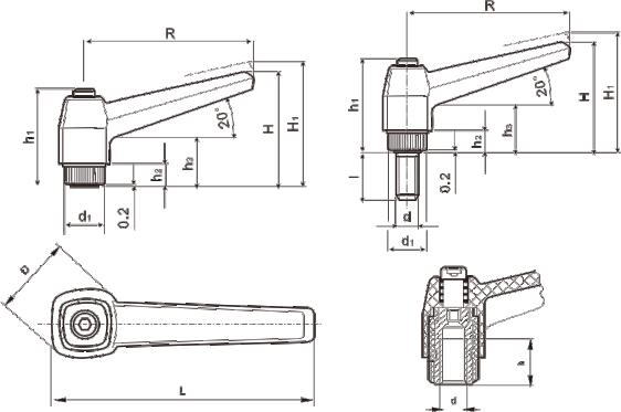 特性:手柄體部分可以垂直拉起,并沿裝配軸旋轉(zhuǎn)至其他角度后落下,從而讓使用者在增加杠桿扭力的同時(shí),方便停靠位置,更加有力的調(diào)整操作