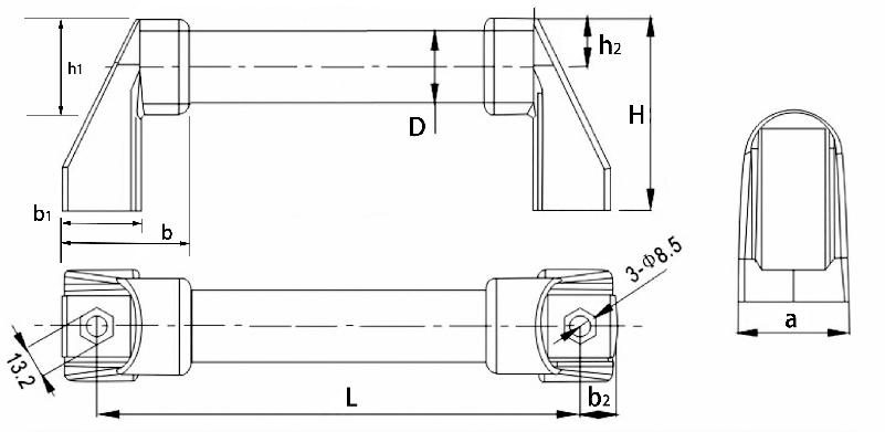 材質(zhì):管身(鋁合金)、拉手支座(增強尼龍含30%玻璃纖維)